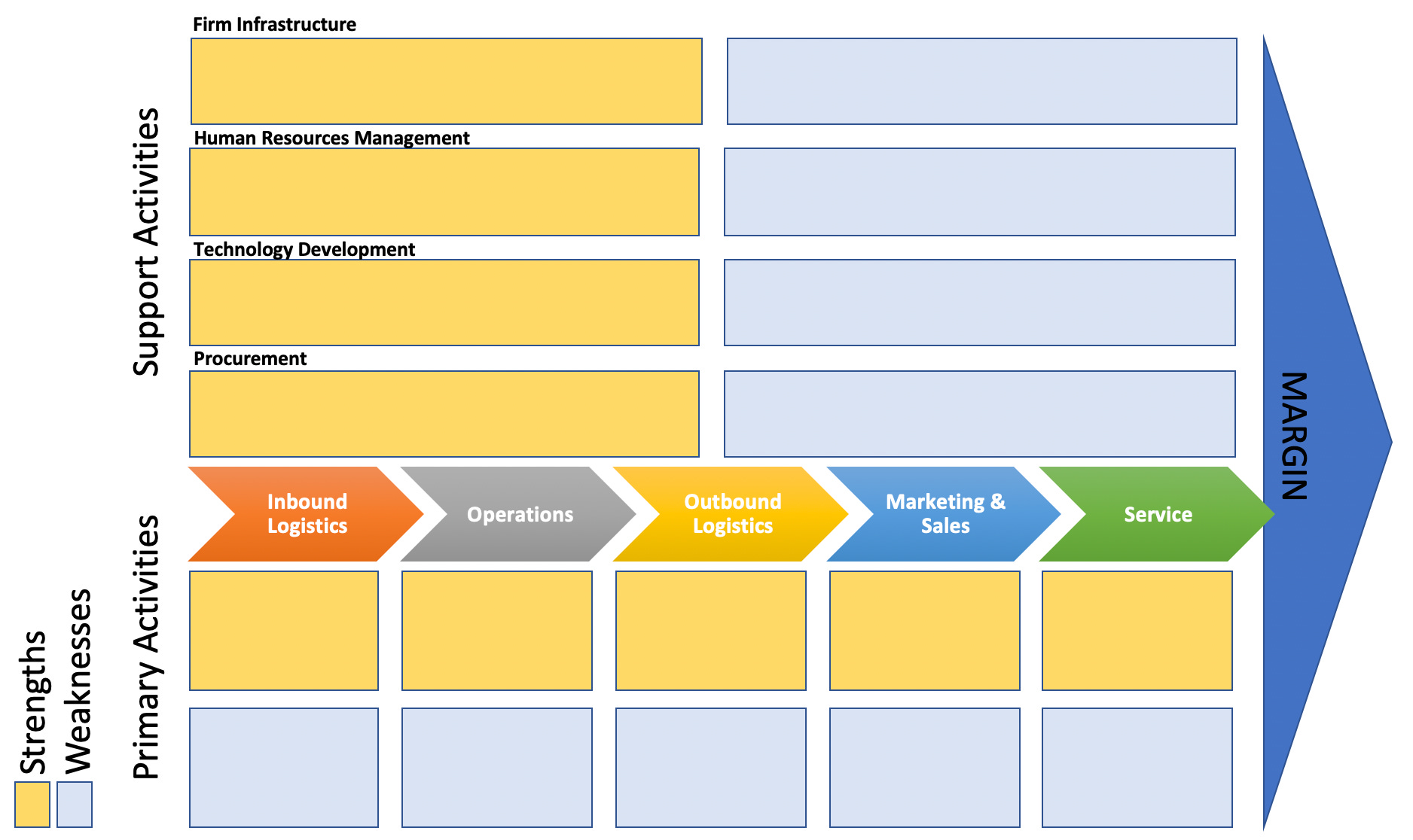 Honestly looking at the strengths and weaknesses of your business and where they map to the value chain, either as Support Activities or Primary Activities, will be crucial in the next stages of determining your digital strategy going forward.
